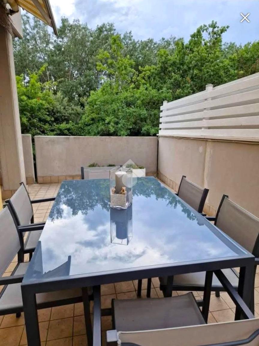 L’appartamento dispone di riscaldamento a radiatori, aria condizionata con split e un ampio terrazzo con tenda da sole, ideale per pranzi e cene all’aperto.